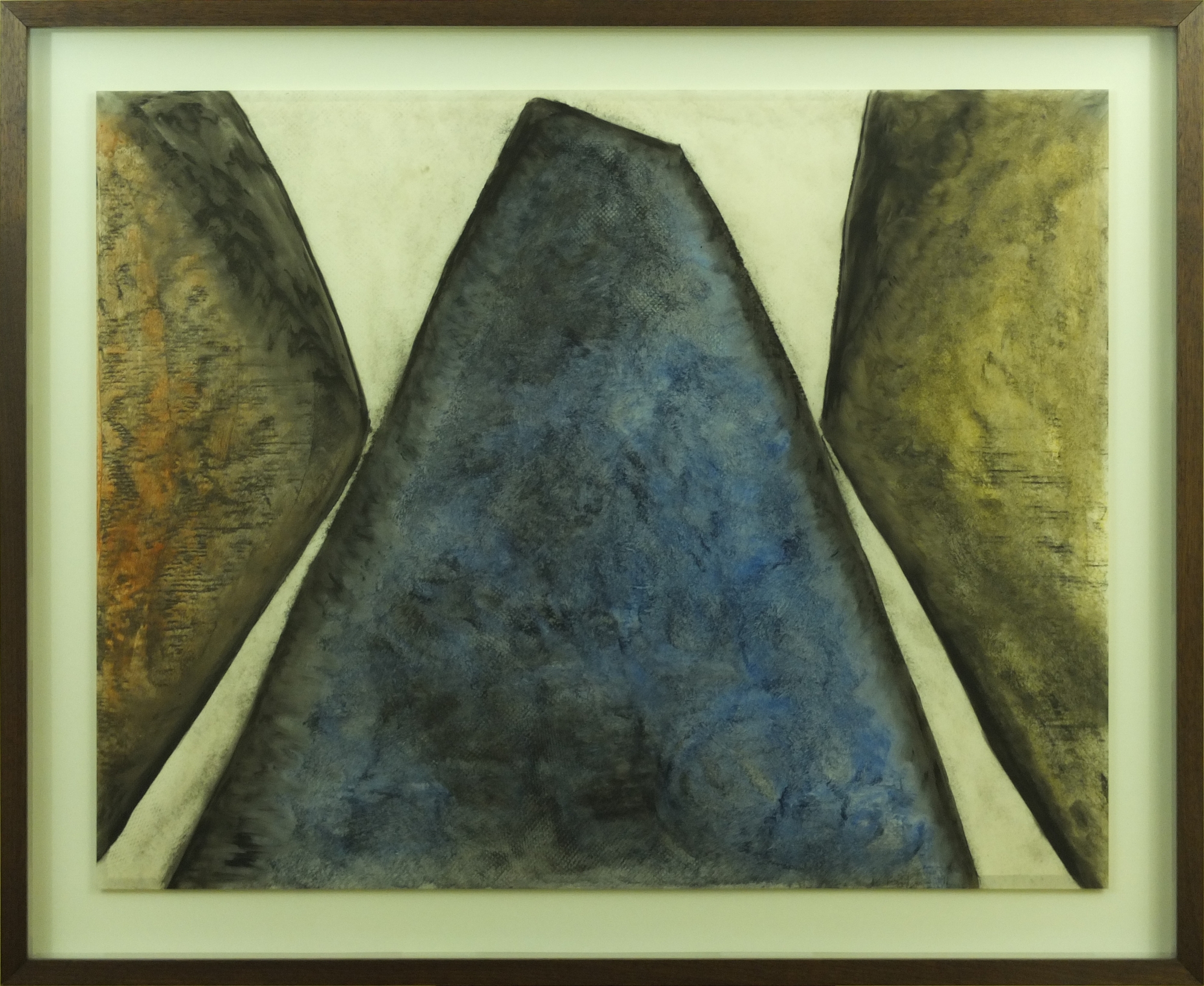 I will now introduce the second set of three drawings by Virginio Ferrari that I was able to acquire as a result of the quest I outlined in the last posting. These are from a series of colored charcoals that he calls “Dune Acres”, which were done in 1991, while working from Dune Acres, Indiana (on the southern shore of Lake Michigan). They are each additionally subtitled “Tre Forme”; I don’t recall whether there are other works from the same series that I saw with a different number of forms as the subject.