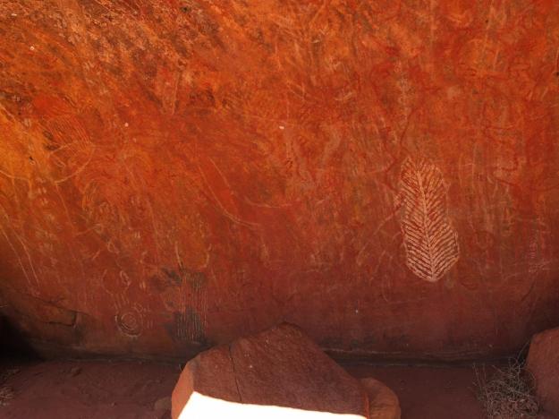 In one of the caves, some of the Anangu ancestors were trapped by a beast, and ended up frozen in the walls. These ancestors protect the current Anangu people when they use the cave now.
