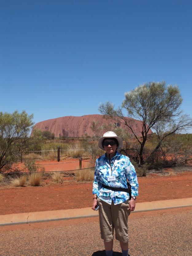 Speaking of Uluṟu, here’s Mom in a photo op, on our way to visit the big rock after lunch: