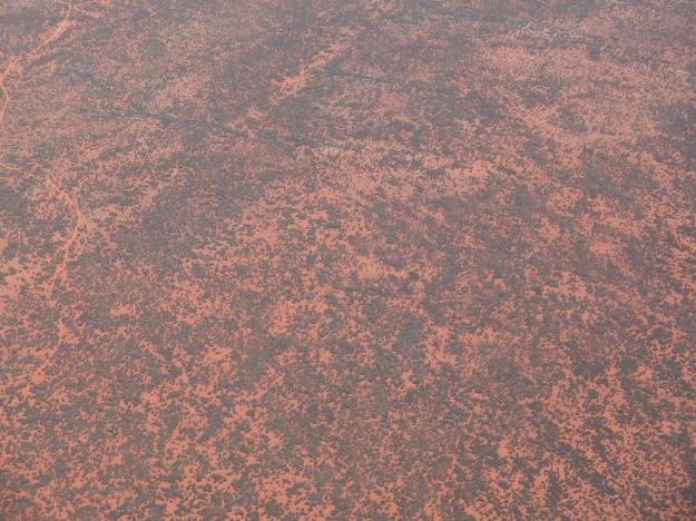 Painting is actually a somewhat-recently acquired art form for the aborigines, with the introduction of modern canvas and paint by westerners fifty or so years ago, though many of the designs and symbols they use are not only traditional but downright ancient. It also seems like some of the abstract expressions that I responded to were only brought about with aboriginal exposure to airplane travel and viewing the land from above (or possibly, photos from above), unless the artists are truly able to envision the larger texture of the land purely based on their ground-level experiences of the land. Though none of the paintings looked anything like this (or any other aerial shot) in explicit terms, some of them had an incredible similarity of emotional quality.