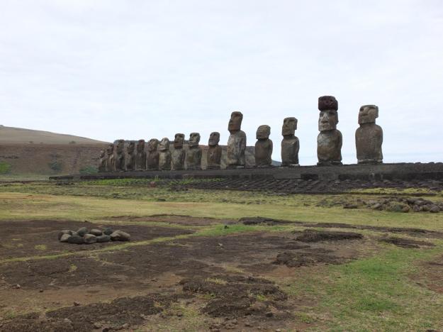 From the quarry at Rano Raraku, we drove down to the site at Tongariki. Here’s a closer view of the fifteen Moai.