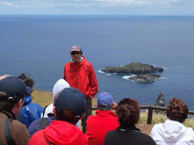 Here’s Claudio explaining to our group about the caves and dwellings and other remnants of the Rapa Nui presence and doings found on these islets: