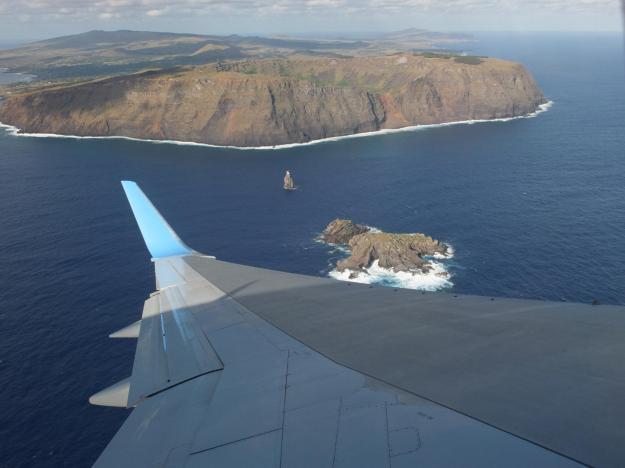 On the way in, the captain did a low fly-around of the entire island, actually for both sides of the plane, showcasing the inland volcanic domes and the stunning caldera at the south-west corner of the island (pictures to come later), as well as the beautiful coast (see aerial view in the headliner of the blog today). I don’t think United Airlines does this type of thing, maybe I should get a new mileage card.