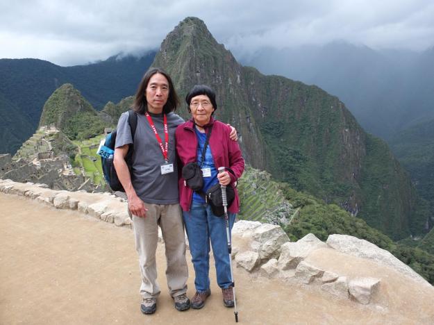 There is no way to describe this in words, you just have to go there and see it for yourself. In the background is Huayna Picchu and Baby Picchu; Machu Picchu itself is at our backs. Here is the souvenir shot from that spot: