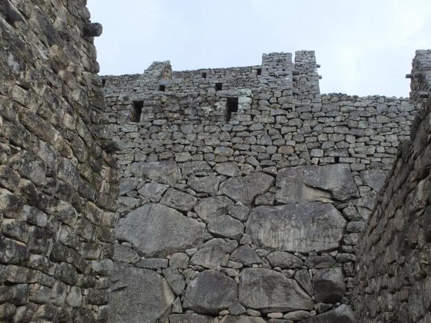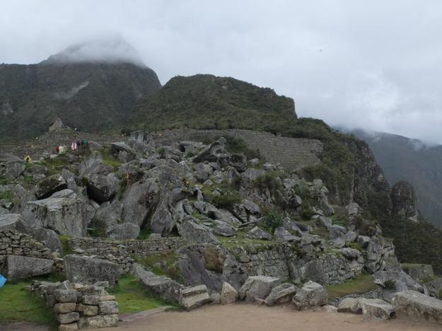 Here is a view looking north across the plaza that divides the urban section of the site, showing some very creative architecture incorporating intact granite slabs that are part of the mountainscape. I don’t know whether this was a completed construction, or whether the Incas were intending to continue developing the granite to eventually replace the natural exposure with their iconic stonework.