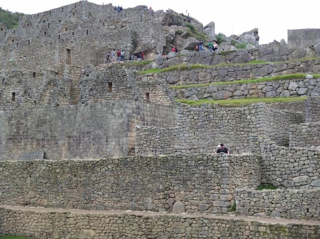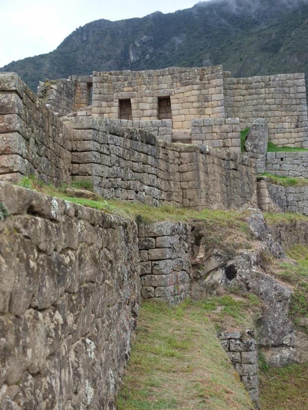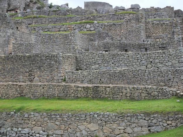 Going down from the urban portion of the site, where the slope is almost vertical, they built terraces as well, with sophisticated drainage systems (including hauling up tons of sand from the river 1200-1300 feet below) to control erosion and make the construction stable and robust. Was their engineering any good? Take a look, I’d say it’ll do ’til some other engineering comes along (which we ain’t seen yet).