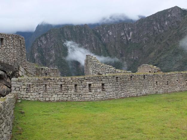 I just love traveling by train, I love watching the countryside go by, especially when it is simple (like this part of Peru), dotted with remnants of Incan and post-Incan history (I’ll show you a picture in a second). It is a little sad seeing some of the kids in well-worn, often tattered clothing, standing in their yards or on dirt roads as we pass through small towns, waving to the millionaires riding a shiny, fully decked-out train, sipping champagne (Moët, to be precise). I talked to some of the more sympathetic folks on the trip, who are also torn about this disparity (which repeats itself in some manner everywhere we go). We rationalize it by convincing ourselves that one of the primary sources of income in these areas is tourism, they want us to come and spend our money—they are better off for it—, but it’s hard to see the benefit in some of the places in the Cusco countryside, where it looks like they are really just scratching out a subsistence. I hope they are better off than I think and are satisfied with their living, but I don’t know (and fear they are not).